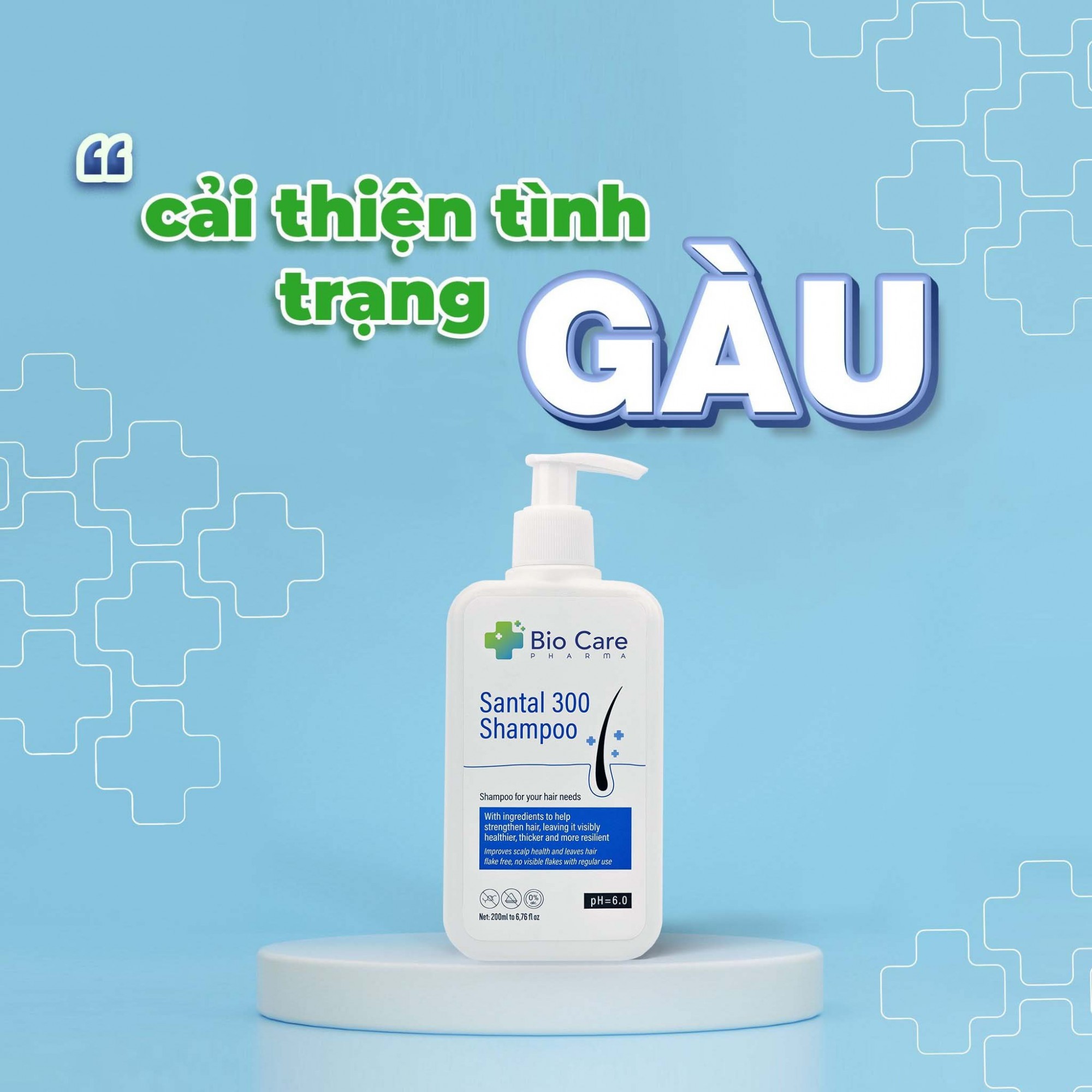 Santal 300 Shampoo là sản phẩm được BioCare Pharma đặc biệt chăm chút trong việc nghiên cứu và sáng tạo công thức độc quyền, với mục tiêu giải quyết vấn đề gàu do nấm malassezia gây ra. Với thành phần được lựa chọn kỹ càng và hiệu quả, sản phẩm có khả năng cải thiện tình trạng gàu một cách nhanh chóng và hiệu quả.